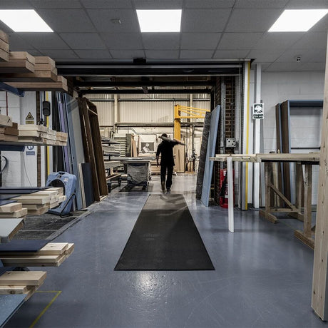 Our products include anti-fatigue, rubber, vinyl, interlocking, and non-interlocking mats, protective flooring, moisture and dirt control, electrical protection, dissipative floor and workbench mats.