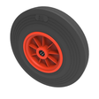 Black rubber tyre on red polypropylene centre with a roller bearing. Diameter 300mm, tread width 54mm, bore size 25.4mm, hub length 51mm. Load capacity 280kg.
