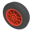 Black rubber tyre on red polypropylene centred wheel with a plain bearing. Diameter 350mm, tread width 80mm, bore 25.4mm, hub 66mm. Load capacity 300kg.N:B BIL catalogue states 90mm tread width but the tread width is 80mm.