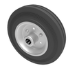Black rubber tyre on steel disc centre with a roller bearing. Diameter 150mm, tread width 34mm, bore size 15mm, hub length 50mm. Load capacity 135kg.