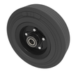 Black rubber tyre on steel disc centre with ball bearings fitted. Diameter 300mm, tread width 80mm, 25mm ball bearings, hub length 75mm. Load capacity 400kg.for non towing applications.