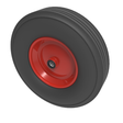 Black rubber tyred wheel on red steel disc centre with roller bearing.Diameter 400mm, tread width 100mm, bore size 25.4mm, hub length 66mm, Load capacity 400kg.for non towing applications.