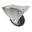 Pressed steel fixed castor with a top plate fixing with a black ergonomic black high elastic natural 55 shore A round profile rubber tyred wheel with a aluminium centre with a ball bearing. Wheel diameter 125mm, tread width 40mm, overall height 158mm, top plate 135mm x 110mm, hole centres 105mm x 80/75mm. Load capacity 200kg. REACH compliant also PAH-Free rubber to confirm to EU-directive 2005/69/EC, also available with flat tread details on request