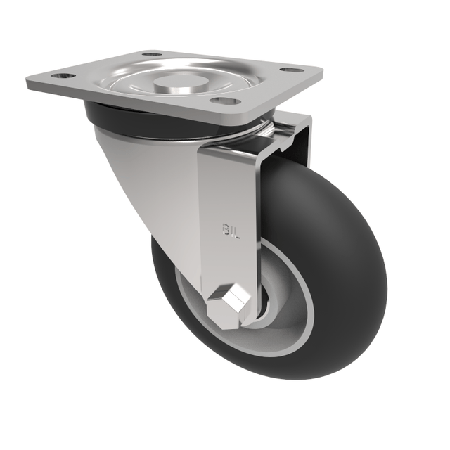 Black Soft Elastic Rubber Plate Swivel Castor 150mm 250kg Load