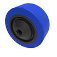 65 shore A blue elastic rubber tyre on a black nylon centred wheel with a ball bearing. Wheel diameter 80mm, tread width 35mm, bore 8mm, hub 49mm. Load capacity 150kg. REACH compliant also PAH-Free rubber to confirm to EU-directive 2005/69/EC