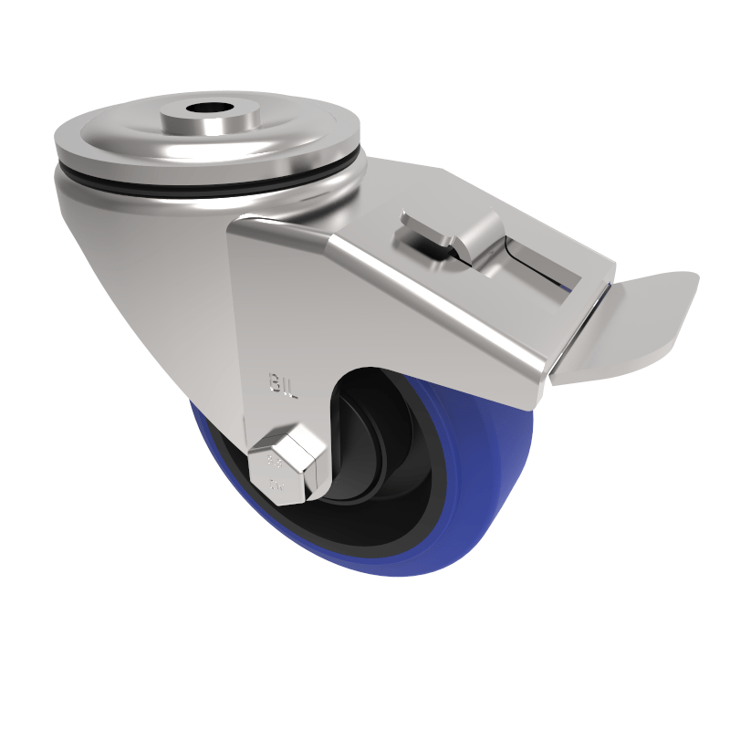 Blue Elastic Rubber 65ShoreA Bolt Hole Swivel Castor Brake 100mm 200kg