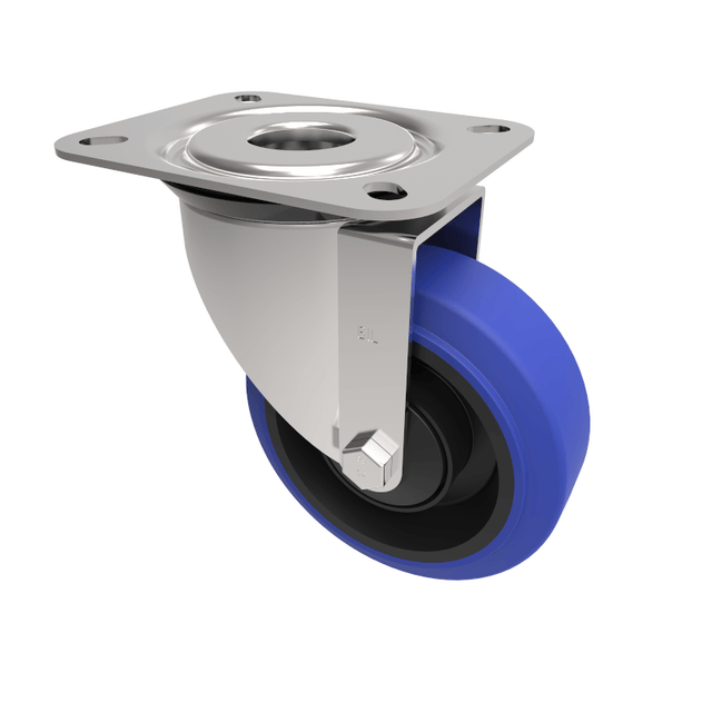 Blue Elastic Rubber 65ShoreA Plate Swivel Castor 100mm 180kg Load