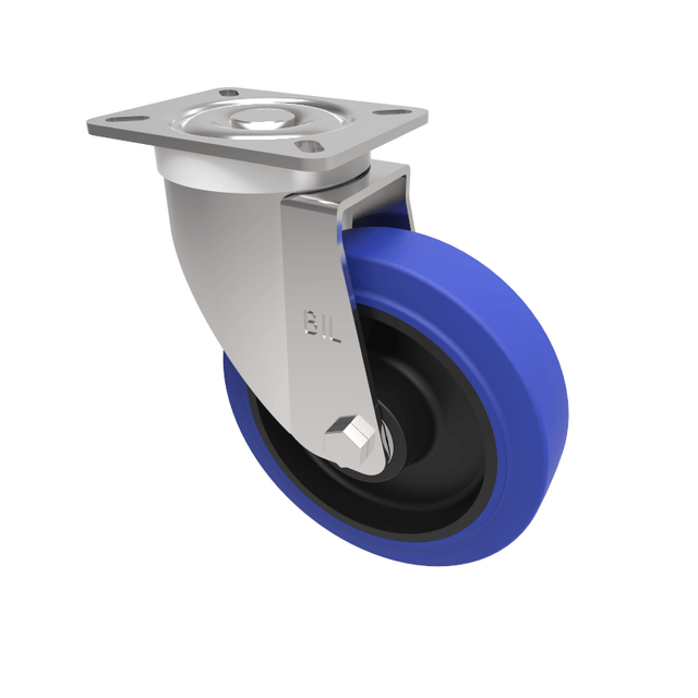 Blue Elastic Rubber 65ShoreA Plate Swivel Castor 150mm 300kg Load