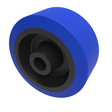 Blue 65 shore A elastic rubber wheel on a black nylon centre. Wheel diameter 75mm, tread width 35mm, bore 12mm, hub 40mm. Load capacity 130kg.REACH compliant also PAH-Free rubber to confirm to EU-directive 2005/69/EC
