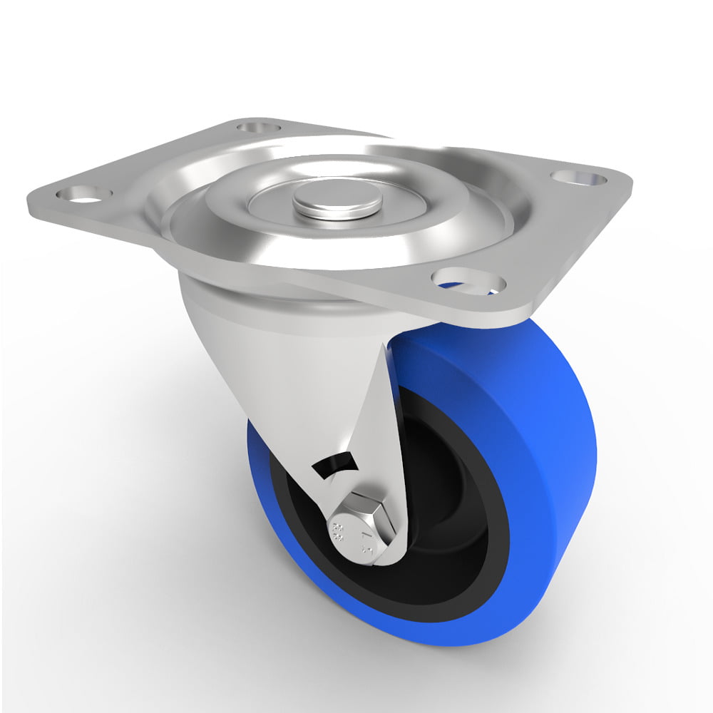 Blue Elastic Rubber 75ShoreA Plate Swivel Castor 75mm 125kg Load