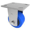 Fabricated fixed castor with a top plate fixing fitted with 65 shore A blue elastic rubber tyred black nylon centred wheel with ball bearings. Wheel diameter 100mm, tread width 50mm, overall height 143mm, top plate 115mm x 102mm, hole centres 92mm x 67mm 76mm x 76mm. load capacity 275kg. REACH compliant also PAH-Free rubber to confirm to EU-directive 2005/69/EC