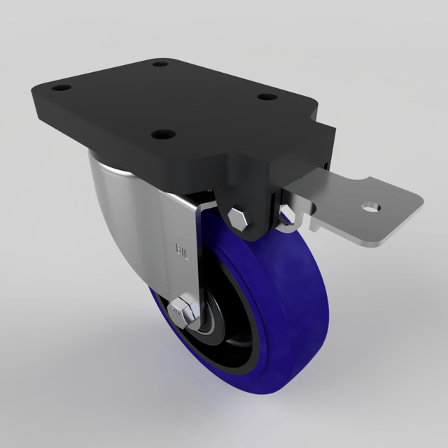 Blue Rubber Swivel Brake Plate Castor 150mm 400kg
