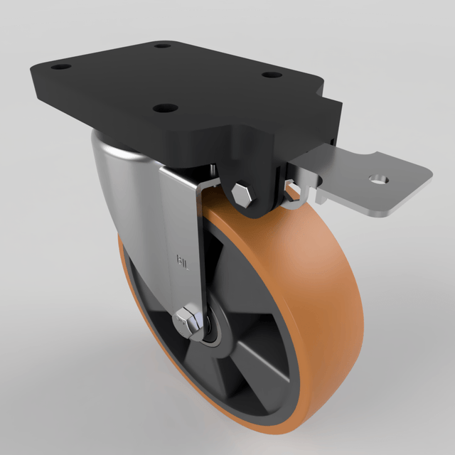 Brown Polyurethane Swivel Brake Plate Castor 200mm 700kg