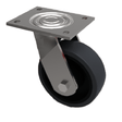 Fabricated swivel castor with a top plate fixing fitted with a cast iron wheel with a plain bearing. Wheel diameter 150mm, tread width 50mm, overall height 190mm, top plate 138mm x 110mm, hole centres 105mm x 80mm. Load capacity 600kg.