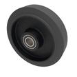 200mm diameter black 65 shore A elastic speed rubber tyred on a cast iron centred wheel with ball bearings. Tread width 50mm, bore 25.4mm, hub 60mm. Load capacity 500kg at 4kph and 175kg at 20kph.