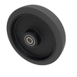 Black elastic rubber wheel on a cast iron centre with ball journal bearings. Wheel diameter 250mm, tread width 50mm, bore size 20mm, hub 60mm. Load capacity 500kg.