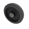 250mm diameter black 65 shore A elastic speed rubber tyred on a cast iron centred wheel with ball bearings. Tread width 50mm, bore 25mm, hub 60mm. Load capacity 550kg at 4kph and 190kg at 20kph.