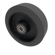 250mm diameter black 65 shore A elastic speed rubber tyred on a cast iron centred wheel with ball bearings. Tread width 75mm, bore 25.4mm, hub 83mm. Load capacity 800kg at 4kph and 280kg at 20kph.