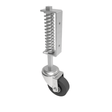 Fabricated swivel sprung loaded gate castor with a sidemounted plate fixing. Fitted with a black elastic rubber tyre on cast iron centre wheel with ball bearings. Wheel diameter 100mm, Tread width 40mm, Overall height 375mm, Fixing Hole M8 drilled on 85mm centres, Load capacity 75kg, Spring compression starts at 20kg