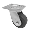 Fabricated swivel castor with a top plate fixing fitted with a black elastic rubber on cast iron centred wheel with ball bearings. Wheel diameter 125mm, tread width 50mm, overall height 165mm, top plate 115mm x 102mm, hole centres 92mm x 67mm or 76mm x 76mm, load capacity 300kg.