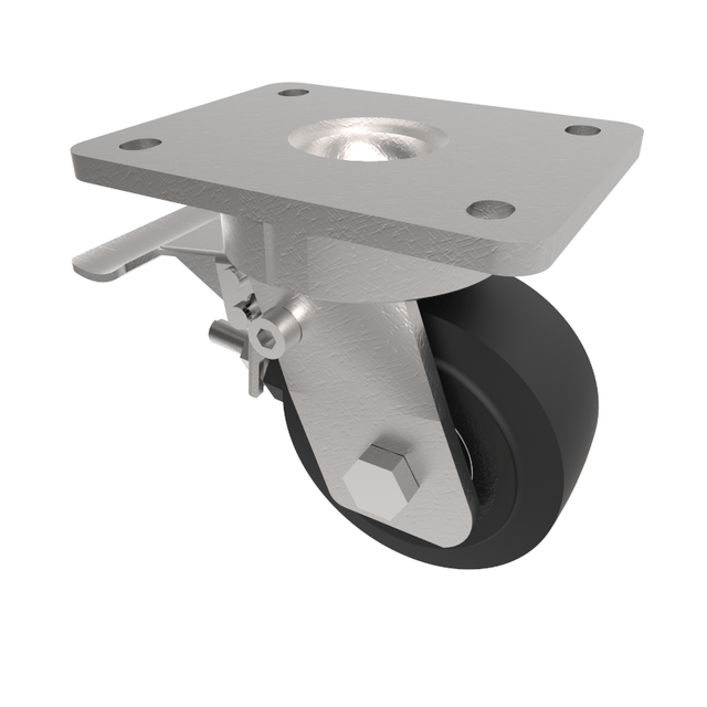 Elastic Rubber Cast Iron Plate Swivel Castor Brake 100mm 210kg Load