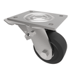 Fabricated swivel castor with a top plate fixing fitted with a black elastic rubber on cast iron centred wheel with ball bearings with total lock brake. Wheel diameter 125mm, tread width 50mm, overall height 165mm, top plate 135mm x 110mm, hole centres 105mm x 80mm. Load capacity 300kg.