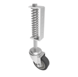 Fabricated swivel sprung loaded gate castor with a sidemounted plate fixing. Fitted with a black elastic rubber tyre on aluminimum centre wheel with ball bearings. Wheel diameter 100mm, Tread width 40mm, Overall height 375mm, Fixing Hole M8 drilled on 85mm centres, Load capacity 75kg, Spring compression starts at 20kg