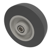 300mm diameter black high elastic natural 65 shore A rubber tyred on an aluminium centred wheel with a ball bearing. Tread width 80mm, bore 30mm, hub 83mm. Load capacity 800kg.