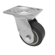 Fabricated swivel castor with a top plate fixing fitted with a black high elastic 65 shore A rubber tyre with aluminium centre wheel with ball bearings. Wheel diameter 100mm, tread width 50mm, overall height 143mm, top plate 115mm x 102mm, hole centres 92mm x 67mm and 76mm x 76mm. Load capacity 250kg. REACH compliant also PAH-Free rubber to confirm to EU-directive 2005/69/EC