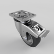 Pressed steel swivel castor with a top plate fixing fitted with a black high elastic 65 shore A rubber tyred wheel aluminium centre with ball bearings and a total lock brake. Wheel diameter 125mm, tread width 40mm, overall height 165mm, top plate 105mm x 86mm, hole centres 80mm x 60mm. Load capacity 250kg at 4kph and 100kg at 10kph. REACH compliant also PAH-Free rubber to confirm to EU-directive 2005/69/EC