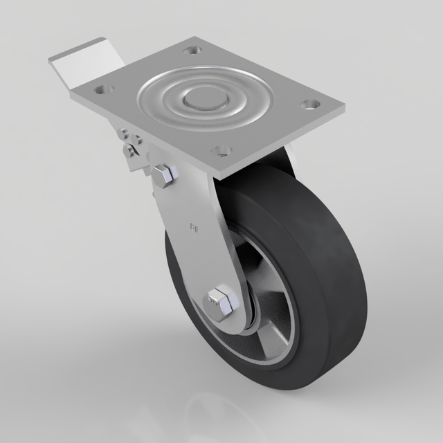 Elastic Rubber on Aluminium Plate Swivel Castor Brake 150mm 350kg Load