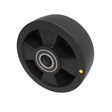 Black electrically conductive nylon wheel with ball bearings. Wheel diameter 150mm, tread width 50mm, Hub width 55mm, Bore size 25.4mm. Load capacity 325kg Conductive offers a resistance R<10000 Ohm