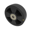 Black electrically conductive nylon wheel with ball bearings. Wheel diameter 160mm, tread width 50mm, Hub width 55mm, Bore size 20mm. Load capacity 325kg Conductive offers a resistance R<10000 Ohm