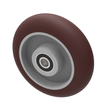 200mm diameter brown ergonomic polyurethane tyred on an aluminium centred wheel with a ball bearing. Tread width 50mm, bore 20mm, hub 56mm. Load capacity 775kg.