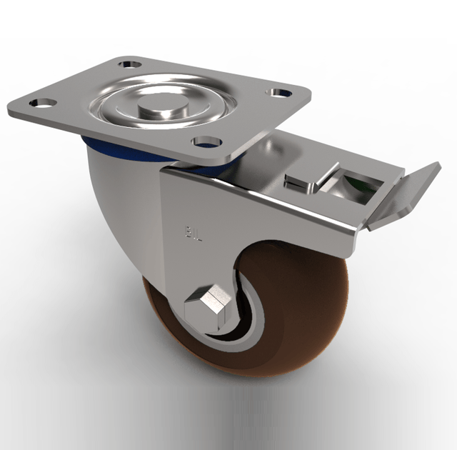 Ergonomic Polyurethane Plate Swivel Castor Brake 100mm 350kg Load