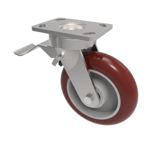 Ergonomic Polyurethane Plate Swivel Castor Brake 200mm 775kg Load