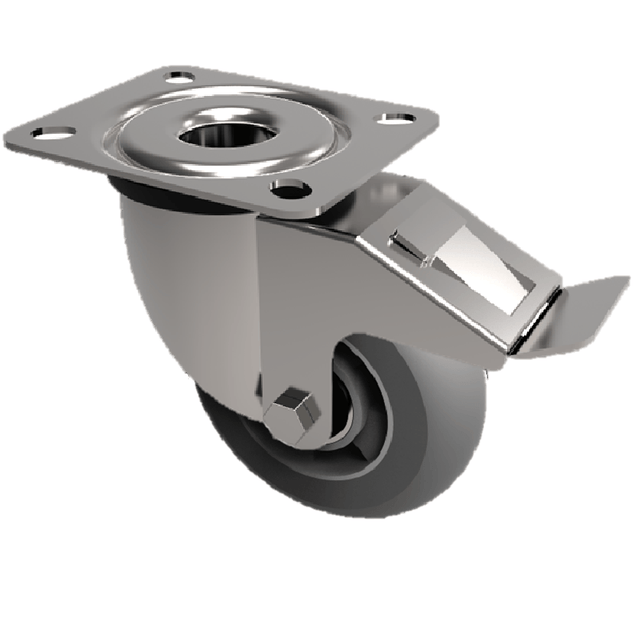 Grey Soft Elastic Rubber Plate Swivel Castor Brake 200mm 400kg Load