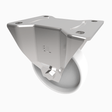 Pressed steel fixed castor with a flat plate fixing fitted with a white nylon wheel with a plain bore. Wheel diameter 125mm, tread width 35mm, overall height 155mm, plate size 135mm x 115mm, hole centres 105mm x 80mm/75mm. Load capacity 300kg.