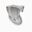 Pressed steel fixed castor with a top plate fixing fitted with a white nylon wheel with ball bearings. Wheel diameter 200mm, tread width 50mm, top plate 135mm x 115mm, hole centres 105mm x 80/75mm. Load capacity 500kg.