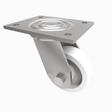 Fabricated swivel castor with top plate fixing fitted with a white nylon wheel with plain bore. Wheel diameter 100mm, tread width 35mm, overall height 143mm plate size 135mmx 110mm, hole centers 105mm x 80mm. Load capacity 400kg.
