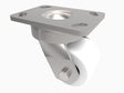 Fabricated swivel castor with a top plate fixing fitted with a white nylon roller with ball bearings. Wheel diameter 82mm, tread width 70mm, overall height 133mm, top plate 150mm x 110mm, hole centres 105mm x 80mm or 121mm x 59mm. Load capacity 600kg.