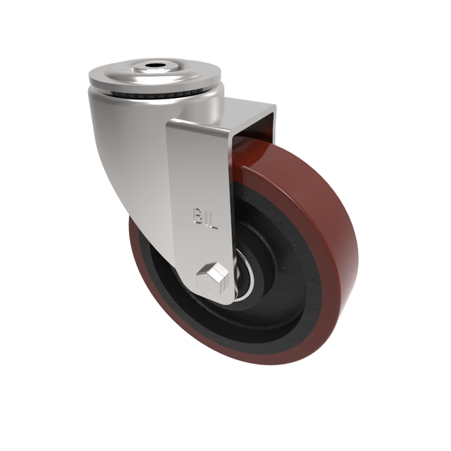 Polyurethane Cast Iron Bolt Hole Swivel Castor 150mm 400kg Load