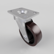 Fabricated swivel castor with a top plate fitted with a brown polyurethane tyre on a cast iron centred wheel with ball bearings. Wheel diameter 150mm, tread width 50mm, overall height 200mm, top plate 150mm x 110mm, hole centres 105mm x 80mm or 121mm x 59mm. Load cap 750kg.