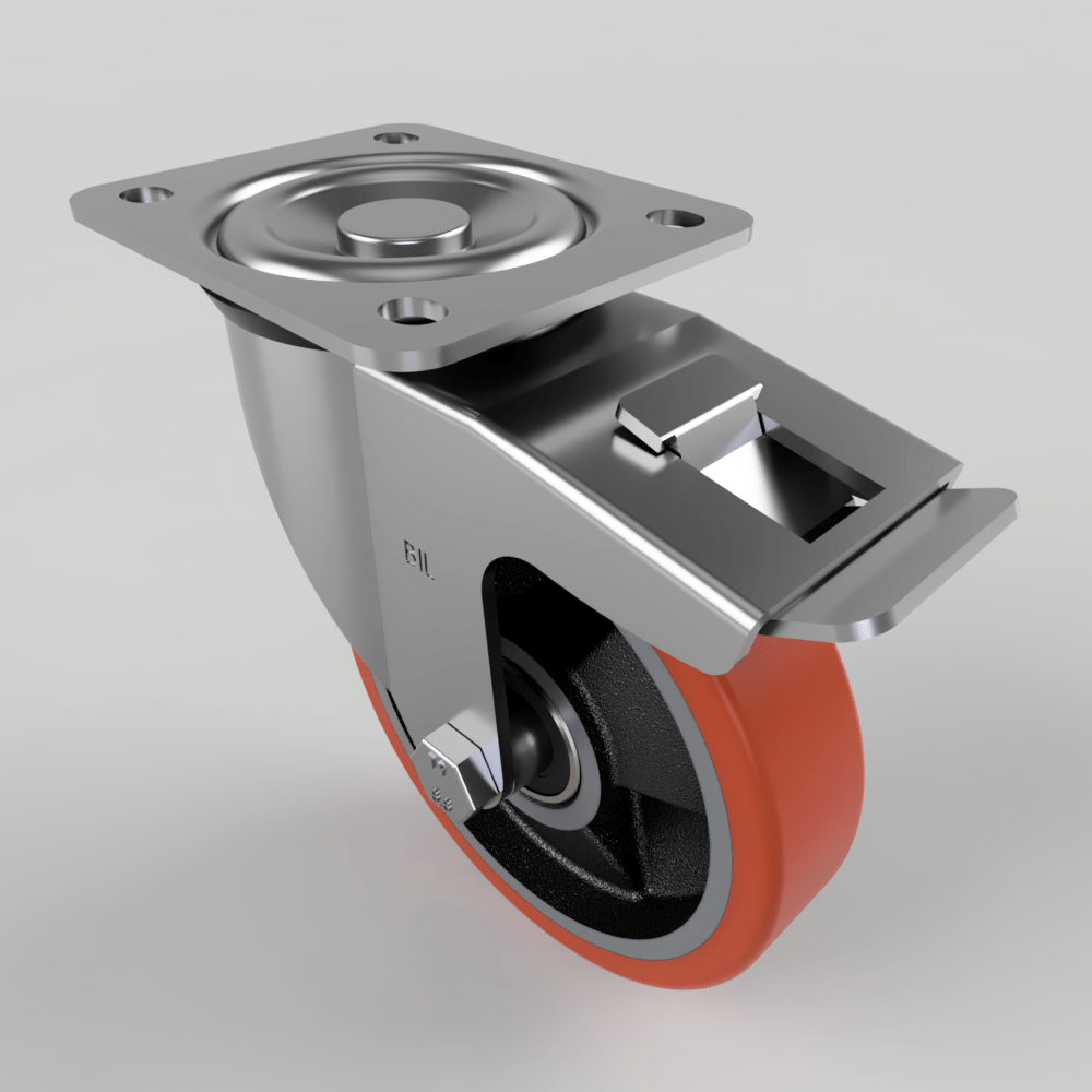Polyurethane Cast Iron Plate Swivel Castor Brake 125mm 300kg Load