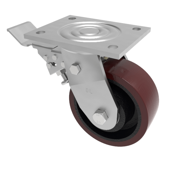Polyurethane Cast Iron Plate Swivel Castor Brake 125mm 500kg Load