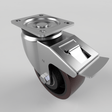 Pressed steel swivel castor with a top plate fixing fitted with a brown polyurethane tyred on a cast iron centred wheel with ball bearings and a total lock brake, Wheel diameter 125mm, tread width 50mm, overall height 165mm, top plate 105mm x 86mm, hole centres 80mm x 60mm. Load capacity 500kg.
