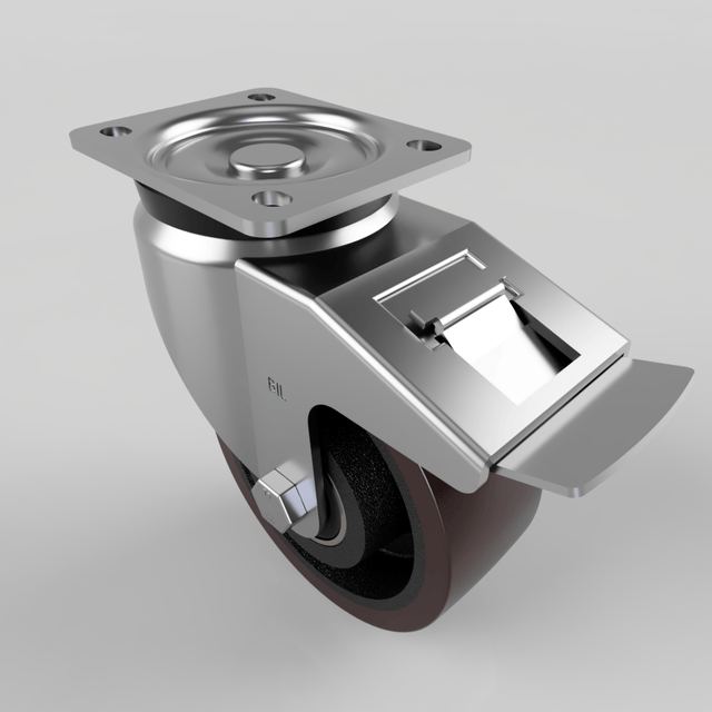 Polyurethane Cast Iron Plate Swivel Castor Brake 125mm 500kg Load