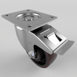 Pressed steel swivel castor with a top plate fixing fitted with a brown polyurethane tyred on a cast iron centred wheel with ball bearings and a total lock brake .Wheel diameter 125mm, tread width 50mm, overall height 165mm, top plate 135mm x 110mm, hole centres 105mm x 80mm. Load capacity 500kg.