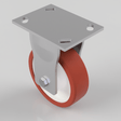Fabricated fixed castor with a top plate fitted with a brown polyurethane tyre on a white nylon centred wheel with roller bearing. Wheel diameter 150mm, tread width 45mm, overall height 200mm, top plate 150mm x 110mm, hole centres 105mm x 80mm or 121mm x 59mm. Load capacity 600kg.