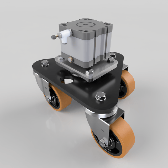 Ezeelift Pneumatic Lifting System including 4 x 100mm Triple Swivel cylinder skates with polyurethane wheels, Flow controls, Manifold, Operating Switch, Co2 Regulator and 25mtrs of tubing. Load Capcity 1000kg.
